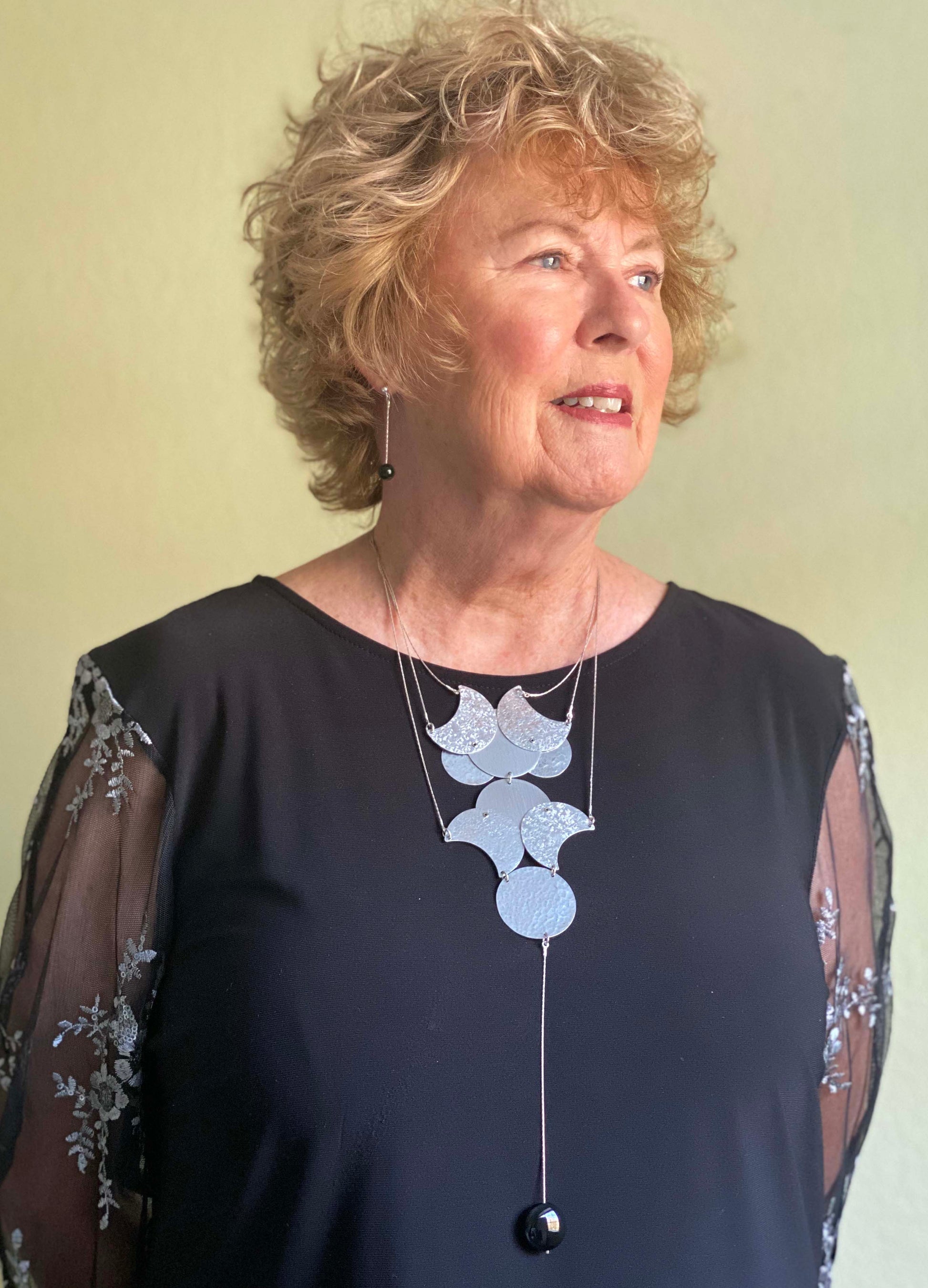 A statement piece for your collection! Multi-dimensional necklace exquisitely crafted by our talented metalsmiths. Intricate hand-hammering techniques & textured designs showcase this lightweight Chick Boss favorite. Finished with a delicate sterling silver chain and black onyx.