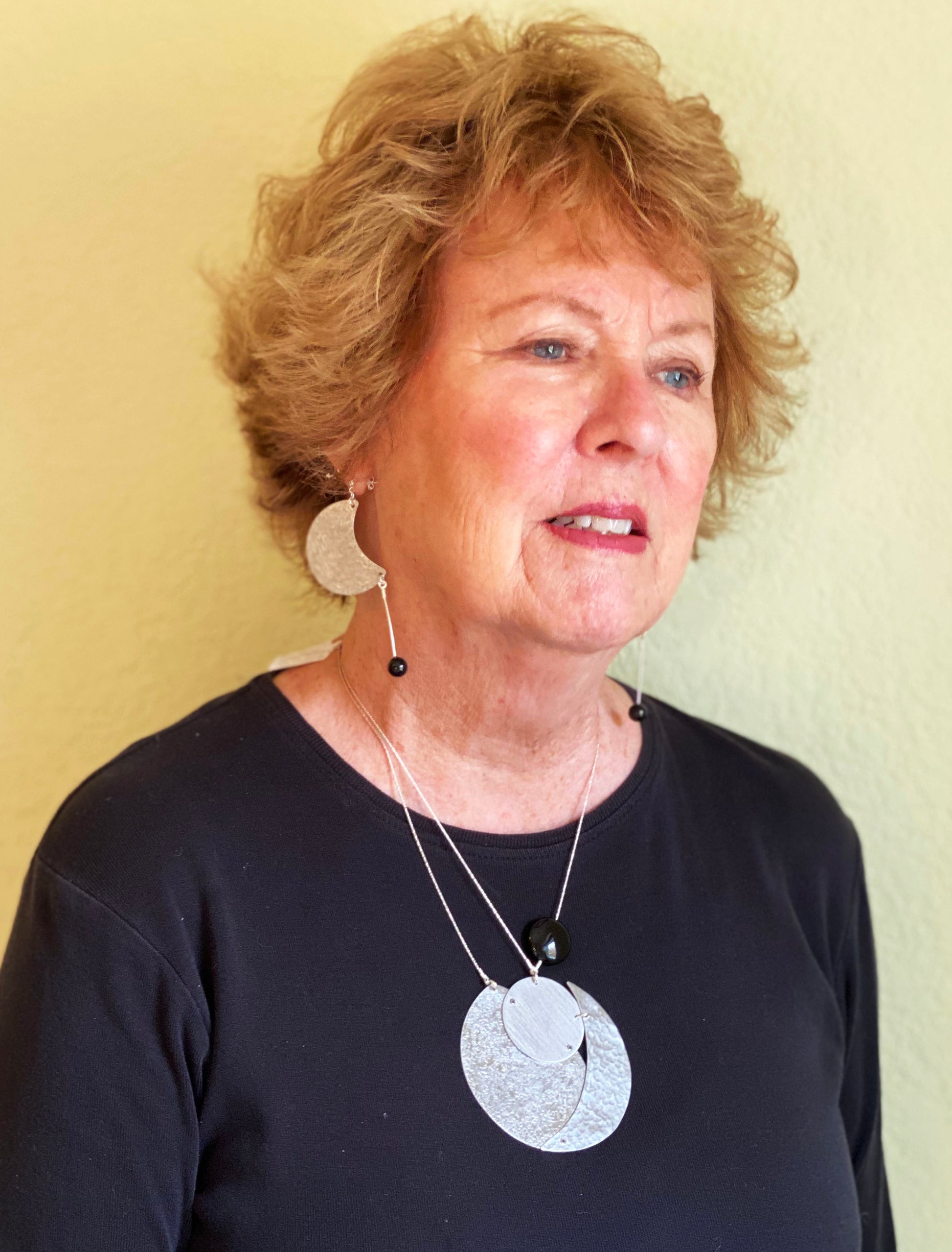 This light weight lunar themed pendant necklace from Chick Boss creates a delicate while bold statement. Offset chains hold an artistic representation of a full-moon rising. Textured floral pattern on aluminum; Onyx, Sterling Silver chain, Large lobster claw clasp.?ÿ