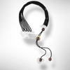 Metal accent pieces are hand-cut and textured (aluminum, brass or copper). Lariat closure.