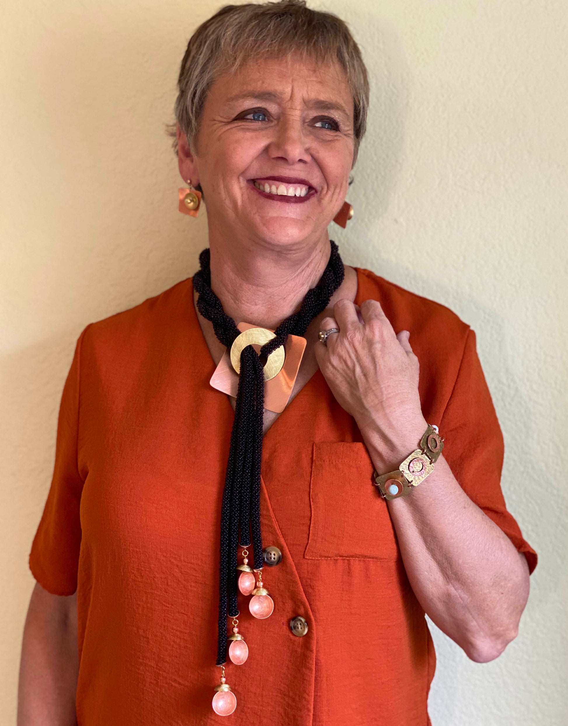 SPRAY Striking Curved Square Mixed Metal Post Earrings with Metal and Accent Bead Options from the SCULPTURAL Collection