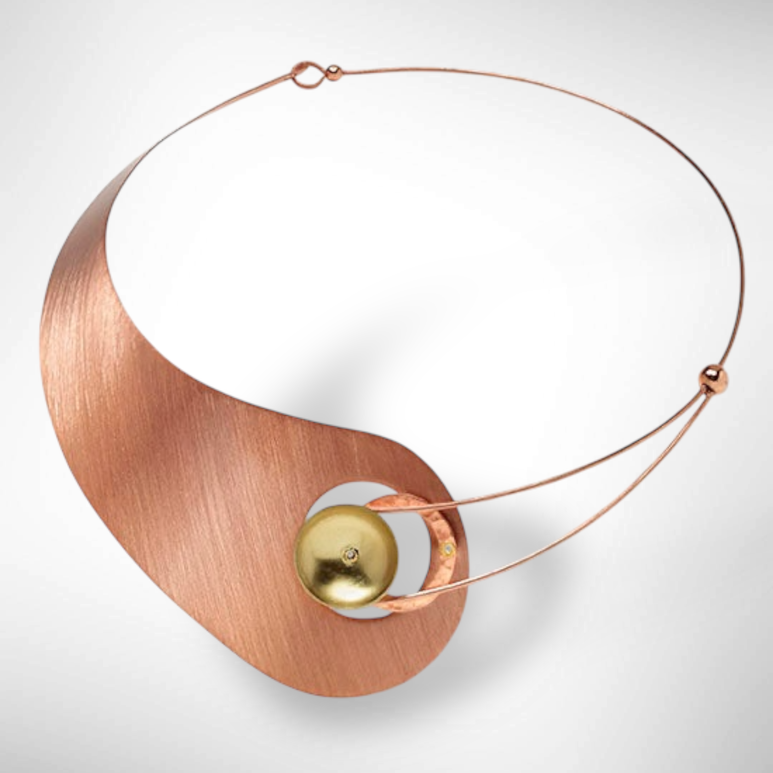 Hand-cut, textured aluminum, brass and copper. Brass and Copper is sealed with polyurethane to retard oxidation.