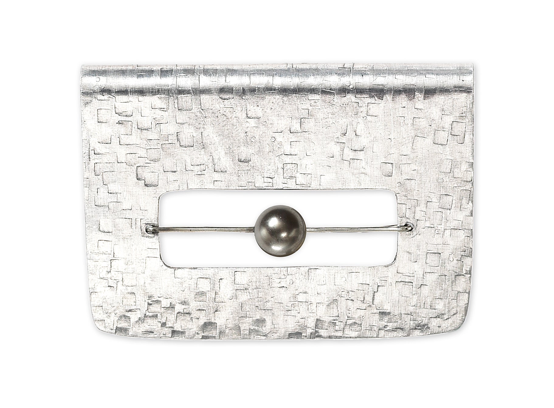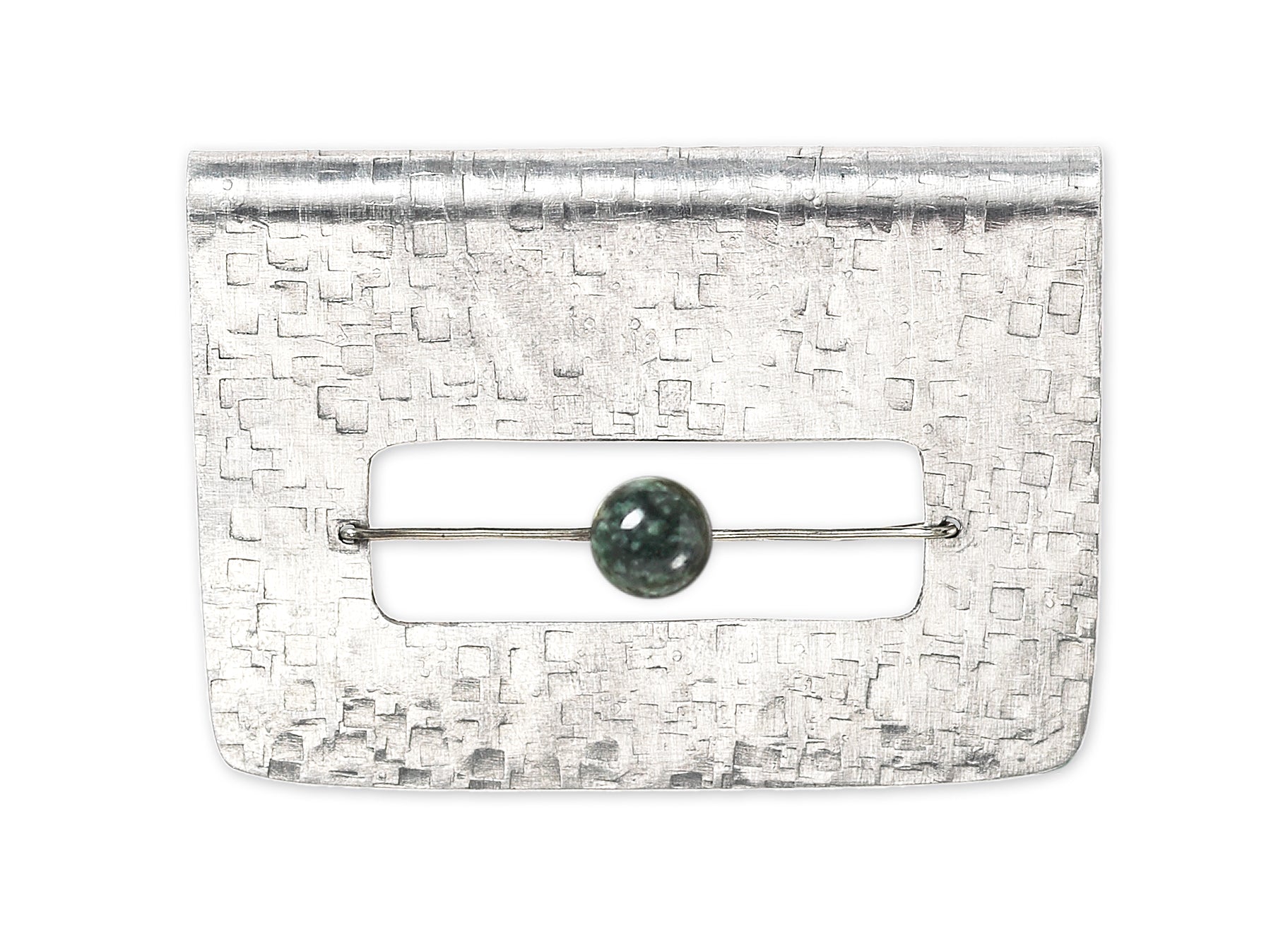 Wear it horizontal or vertical. This brooch is a modern addition to a winter jacket or flowing scarf. Available with simulated pearl or Guatemalan jade accent bead.