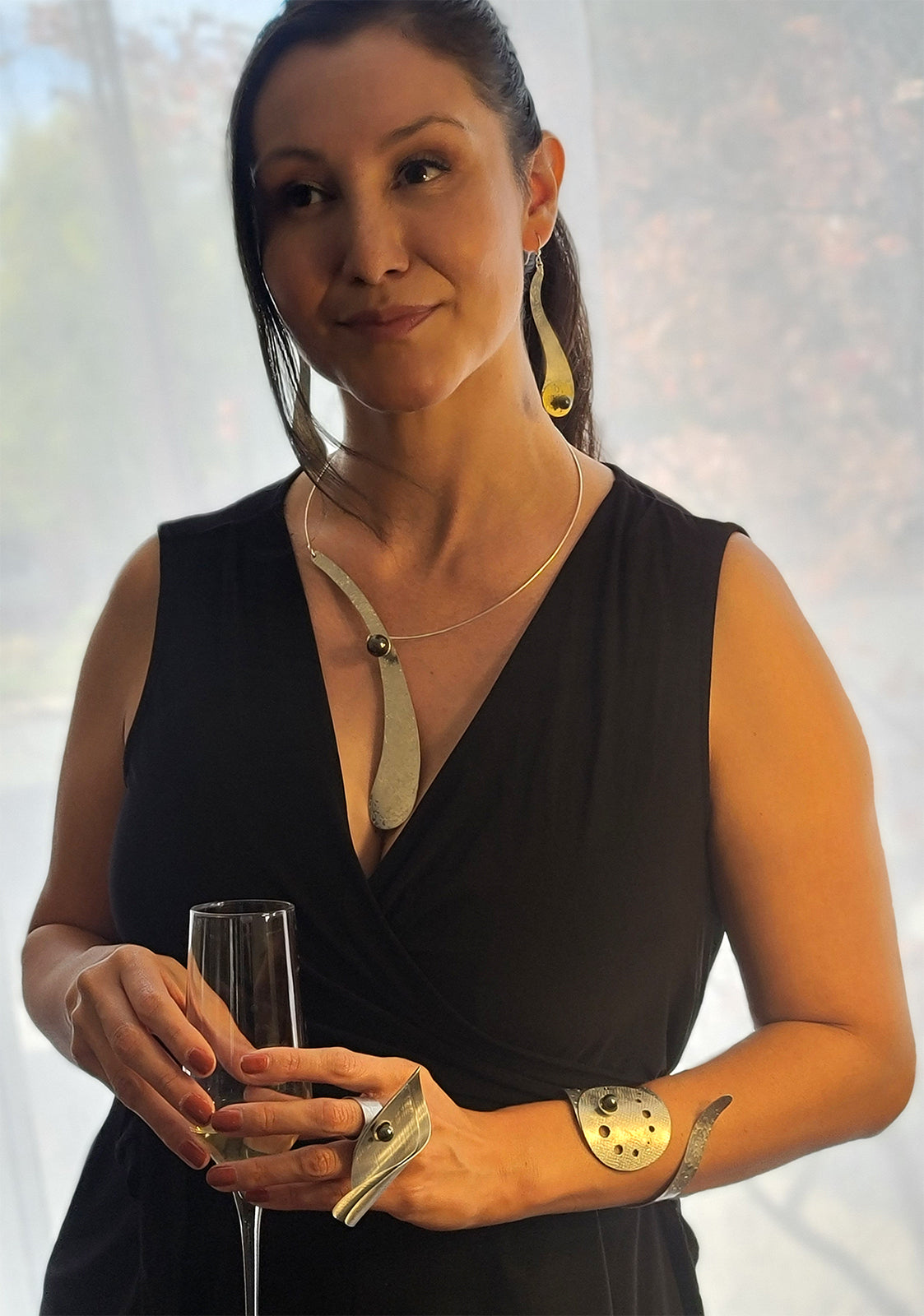 These 3" earrings cascade down your neck and help you feel the ceaseless movement of the seaHand-cut and textured earrings in Aluminum, Brass or Copper with Simulated Pearl or Guatemalan Jade accent beadEar wires are Sterling Silver, Rose Gold fill or 14 karat Yellow Gold fill.Brass and copper are treated with polyurethane